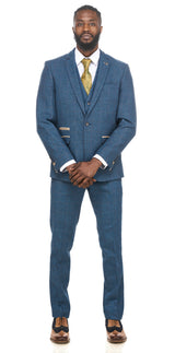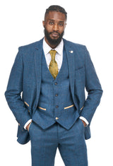 Boasting an elegant Blue tweed check design, this Herringbone suit boasts opulent gold trims and a subtle heritage check.