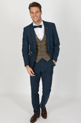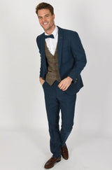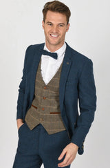 Pairing our Dion Suit in Blue with our Ted Tan Waistcoat will impress for all the right reasons.