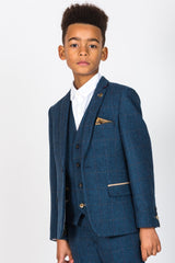 Dion Childrens Blue Tweed Check Three Piece Suit
