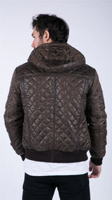 • Mens Hooded Bomber Jacket Lightweight Quilted Diamond Stitching