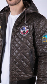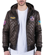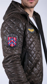 Mens Quilted Hooded Puffer Jacket Brown Badge Bomber Pilot Air Force