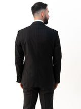 Elevate your wardrobe with the timeless sophistication of the Connor Black Pinstripe Double-Breasted Two-Piece Suit. Perfect for the modern gentleman, this suit combines classic tailoring with contemporary style. The sleek black fabric features subtle pinstripes, exuding effortless elegance for both formal and semi-formal occasions.