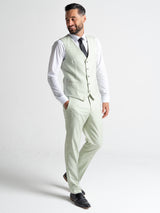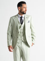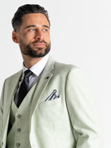 The brand new edward suit is sure to bring something unique into your wardrobe. 3 piece suit featuring a notch lapel pastel green slim fit blazer with complimentary pocket square and pastel green single breasted waistcoat with pastel green slim fit trousers.