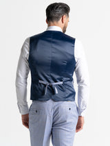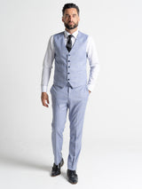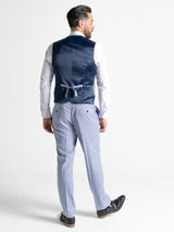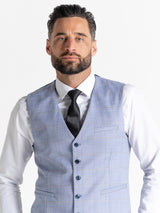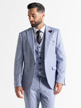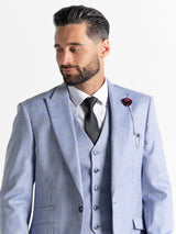 Be the thebest-dressedd man in every room you walk into. our new slim fit 3 piece suit features a baby blue with brown checks detailing slim fit blazer with complimentary pocket square and chain fastening on the lapel with matching waistcoat and slim fit trousers.