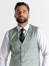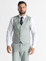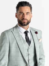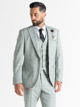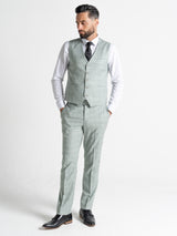 Be the best dressed man in every room you walk into. our new slim fit 3 piece suit features a lime green with blue checks detailing slim fit blazer with complimentary pocket square and chain fastening on the lapel with a matching waistcoat and slim fit trousers.