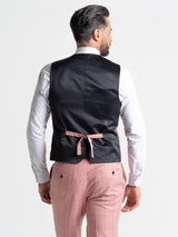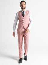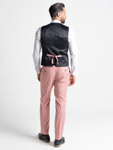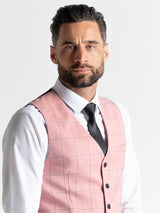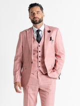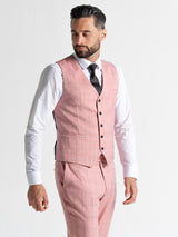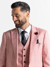 Be the best-dressed man in every room you walk into. our new slim fit 3 piece suit features a pink with black checks detailing slim fit blazer with complimentary pocket square and chain fastening on the lapel with matching waistcoats and slim fit trousers.