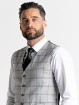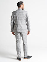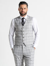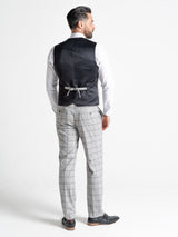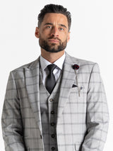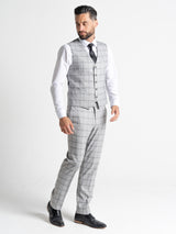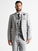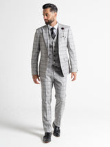 Be the best dressed man in every room you walk into. our new slim fit 3 piece suit 3 piece suit featuring a soft grey with black checks detailing slim fit blazer with complimentary pocket square and chain fastening on the lapel with matching waistcoat and slim fit trousers.