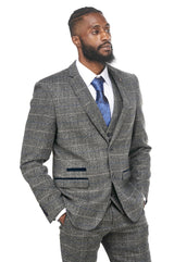 SCOTT GREY CHECK TWEED JACKET AND WAISTCOAT SET | Check suit | Office Wear