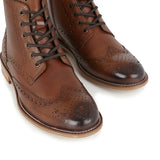 The Gatsby mens boot in Chestnut is our hand-finished lace-up men's boot. Made from high-quality, chestnut leather, with our unique London Brogues pattern on the distinctive wingtip toe cap.