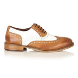 Now our Gatsby brogue shoe in tan and white leather is available for children through our junior range. Hand-finished from high quality, tan leather with a white leather vamp and quarters. With our unique London Brogues pattern on the distinctive wingtip toe cap, Gatsby combines the smartness of an Oxford shoe with the contemporary style and comfort of London Brogues’ footwear. The perfect formal shoe for your kids no matter the occasion.