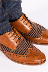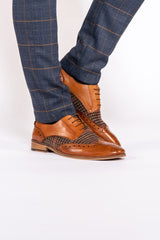 Jacob Tan Leather Tweed Contrast Brogue Shoe