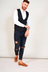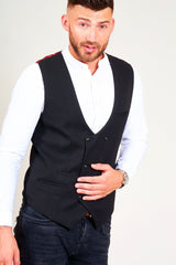 Kelly Black Double Breasted Waistcoat :- Plain Waistcoats