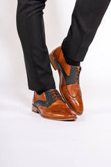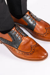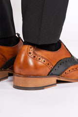 Riley Tan Navy Leather Contrast Oxford Brogue Shoes