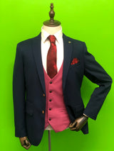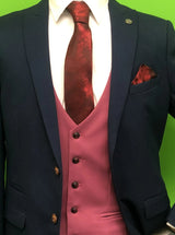 ROYAL BLUE SUIT WITH PINK WAISTCOAT AND RED PAISLEY PRINT TIE SET