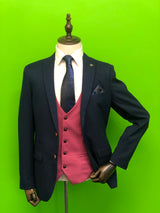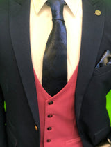 Stand out from the crowd on your big day and wow your guests in this glorious three piece wedding suit. The pink single breasted waistcoats sits perfectly with the navy paisley print tie and royal blue suit. This will rain in on compliments and have you looking your best. Pair with a tan pair of derby shoe's or brogues for that sharp finishing touch.