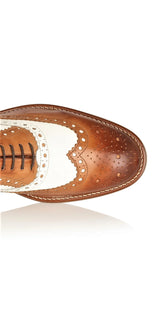 The spectator shoe is what our brand is best known for and it is the mens Gatsby shoe that put us on the map! This Gatsby shoe stands out from regular tan brogues by pairing tan leather with white leather inserts. With our unique London Brogues pattern on the distinctive wingtip toe cap.