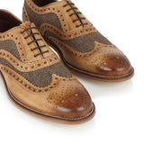 The spectator shoe is what our brand is best known for and it is the mens Gatsby shoe that put us on the map! This Gatsby shoe stands out from regular tan brogues by pairing tan leather with tweed panels on the vamp and quarter. With our unique London Brogues pattern on the distinctive wingtip toe cap. Gatsby combines the smartness of an Oxford shoe with the contemporary style and comfort of London Brogues’ footwear.