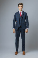 Anthony Navy Tweed Check 3 Piece Suit | Office Wear | check suit