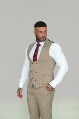 Make an entrance in the Elwood waistcoat. Doused in a subtle check tweed, also looks great styled with the matching Elwood trousers! Style Elwood Waistcoat Material 65% Polyester 30% Rayon 5% Spandex Colour Tan Fitting Skinny Fit Buttons 6 Internal pockets 0 Vents 0 Lapel Pin No