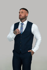 Celebrate in this tailored and sophisticated piece with its subtle check details, the stylish Seeba waistcoat is perfect to sharpen up your look. Style Seeba Material 80% Polyester 20% Rayon Colour Navy Fitting Slim Fit Buttons 5 Internal pockets 0 Vents 0 Lapel Pin NO