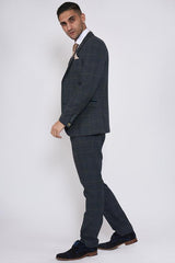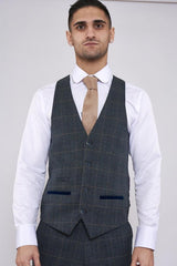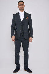 Cut in a modern, contemporary fit shape, this check suit will keep you looking sophisticated both in and out of the office. Featuring a double button fastening to the front and a single vent to the reverse of the suit jacket, alongside luxurious inside lining, removable cuff label and trademark Marc Darcy lapel pin badge. The waistcoat features adjustable side straps with the trousers flat fronted for extra comfort.