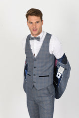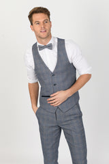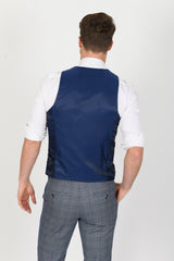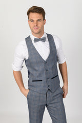 Hilton Blue Tweed Check Waistcoat | Wedding Wear | Office Wear | Check Suit