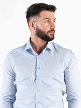 Compliment your grey suit with this classic sky-blue number. This lightweight long-sleeve shirt is ideal to spruce up your office look.