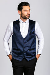 Simon Jacquard Navy Velvet Waistcoat :- Plain Waistcoats