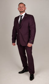• Mens 3 Piece Smart Formal Occasional Suit Finished in Deep Purple Colour.