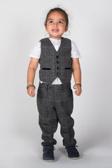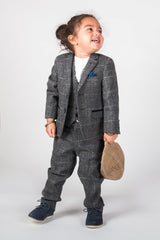 SCOTT - Boys Grey Check Three Piece Suit :- Kids Suits