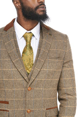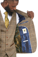 DX7 Tan Brown Tweed Check Peaky Blinder Suit | Wedding Suit | Check Suit | Office Wear
