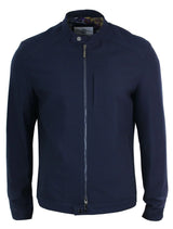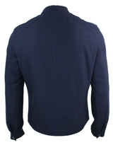 Mens Smart Casual Zipped Nehru Grandad Collar Retro Biker Jacket Navy Blue