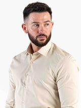 Add a subtle edge to your look with this long-sleeved beige shirt. This staple is cut to a classic fit with a spread collar and full button fastening to the front.